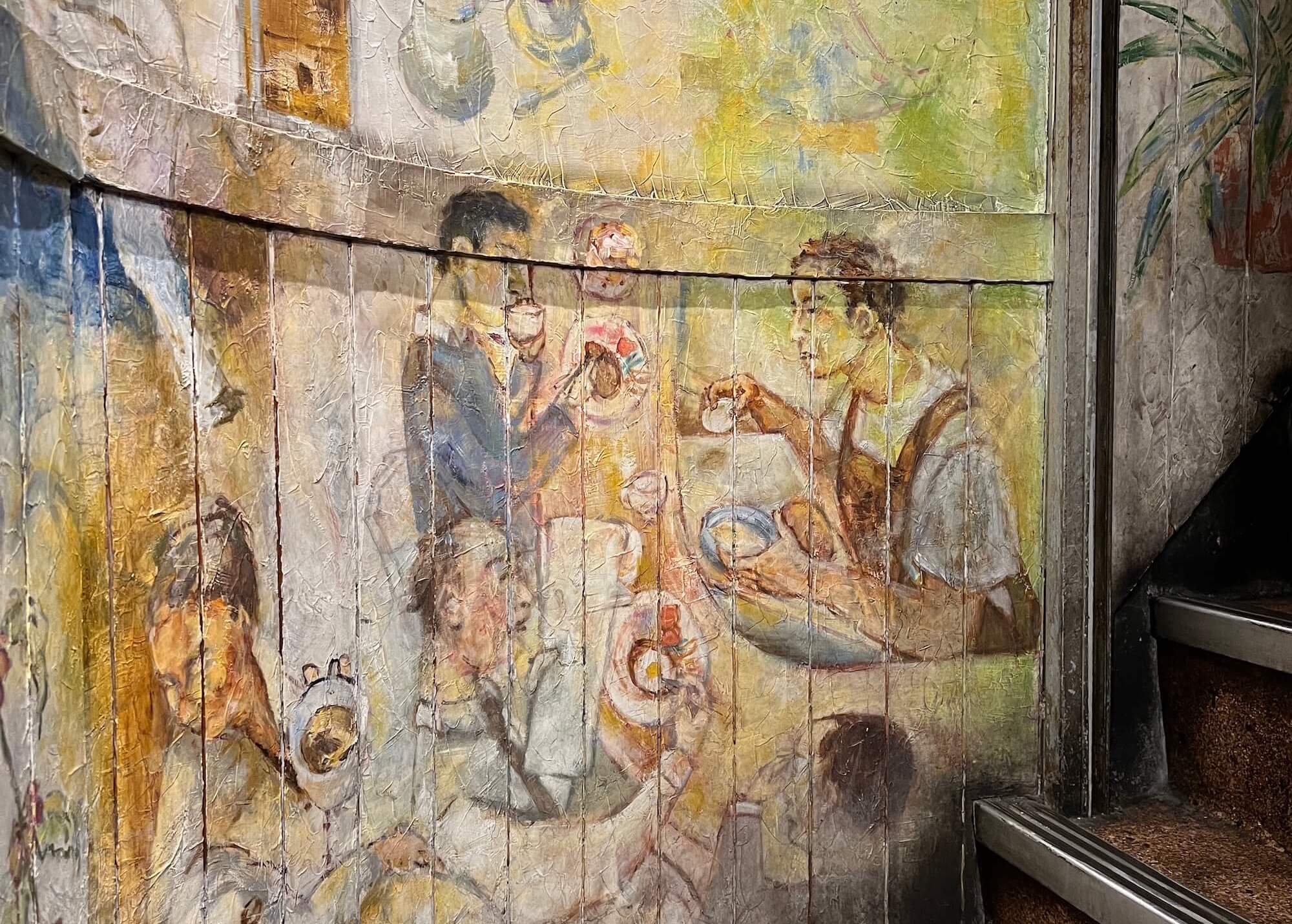位置其實蠻多的,有小桌子、大桌子也有吧台,而且吧台不是高的那種,非常適合一個人去。店裡面的裝飾也都很有味道,樓梯一上來的壁畫讓人覺得好像會進到一個不一樣的世界。適合想喝咖啡配蛋糕的時候,帶本書、或者像我旁邊的客人一樣帶著手帳,用自己喜歡的杯子喝咖啡,佐以搭配得宜的甜點,待到心滿意足。