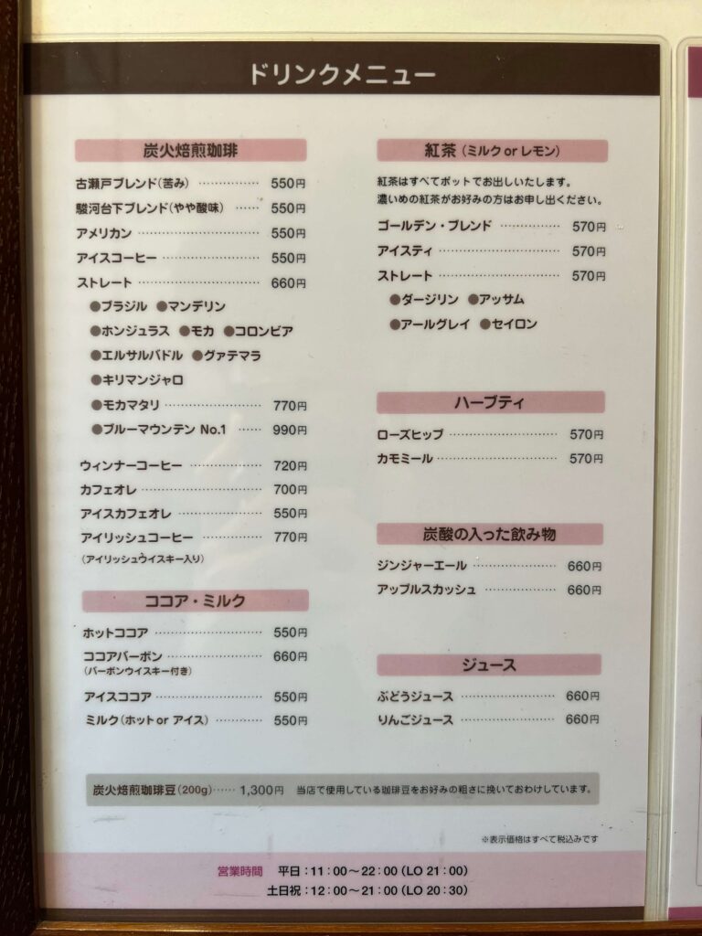咖啡:古瀬戸ブレンド[混合豆](苦味) ¥550